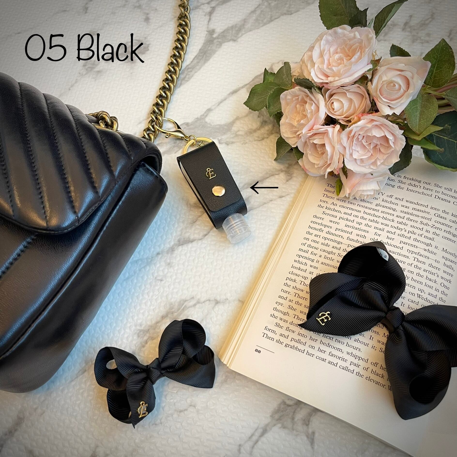 Sanitizer Holder with alphabet charm(イニシャルチャーム付きハンドジェルホルダー)