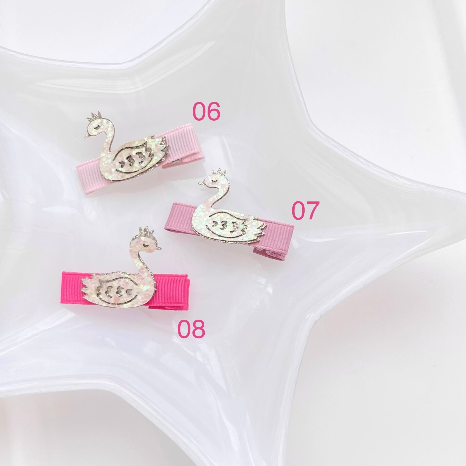 向かい合うように反対を向いているスワンのヘアクリップ2個セットになります。